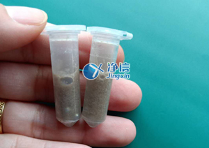 干磨:剪適量頭發(fā)放入2ML離心管中,加入研磨珠若干顆,將裝有樣本的離心管放入研磨孔中,分布均勻擺放,若樣本數(shù)量低于8個,需用空管配比均勻,間隔相同數(shù)量研磨孔擺放樣品管和空管,以保證研磨過程中受力均勻,管子不被打破,離心管擺放后,蓋上機器蓋子,設置研磨參數(shù),將檔速調制4檔,研磨時間設置為5分鐘,按開始鍵進行研磨,干磨效果較好,基本一次就可以研磨成功