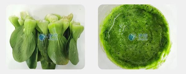 比如組織結(jié)構(gòu)較硬, 含水量豐富的樣品,青菜、黃瓜、茄子等,下面以青菜為例,觀(guān)察刀式研磨儀的處理效果。